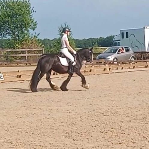 6 year old tinker mare super well behaved 1.36 tall L2 dressage - Für unsere super liebe 6 järige 1, 36 Größe Irish Cob/ Tinker stute Tinkerbell sind wir auf die suche nach einer neuen 5 * Häuschen. Tinkerbell ist mit ein 1e premie afgenommen im Irish Cob stammbuch. Der heutige Stand auf Tunier ist dressur L2+4 Biss jetzt hätte sie fast auf alle turniere wo sie an teilgenommen hätte noch denn ersten platz bekommen so ist sie ein echten schleifen Sammler. Tinkerbell besitzt 3 super Gangarten wobei ihre trab hervorragend is und auf jeden turnier sehr hoch bewertet wird. Im umgang ist Tinkerbell ein super verlass pony, fast jedes kind kann so auf ihr weg reiten. Füße heben, putzen, waschen, Satteln, Tinkerbell macht alles gelassen mit. Eben so beim Zahnarzt, hufschmiede und physio. Ob es auf turniere ist, oder auf die Strasse, gelände oder Wald Tinkerbell bleibt super gelassen und schaut nirgendwo nach um auch an störmende hunde nicht. Tinkerbell ist einfach zu verladen und strassen sicher auch mit Fahrräder lkw's und landwirtschaftlicher verkehr. Tinkerbell ist geimpft und entwurmd und hat ein pass und stambuch certificaat. Alle AKU möglich auf kosten kaufer. Für weitere info oder video's von Tinkerbell, einfach schreiben auf whatsapp 015154809450