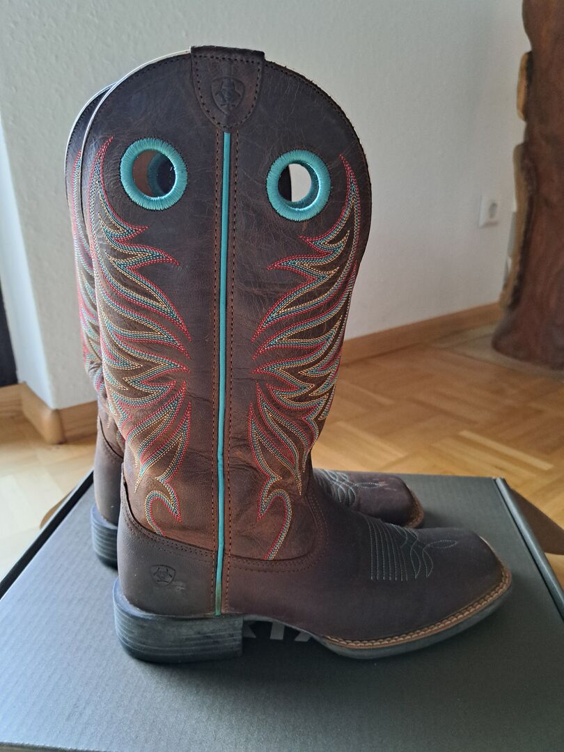Ariat western boots - Super nice western boots, size 39. Have only been worn a few times because the shaft is too high for me. Have a few signs of wear on the front and back from the spurs, otherwise still tip top. Sole and heel are as good as new.