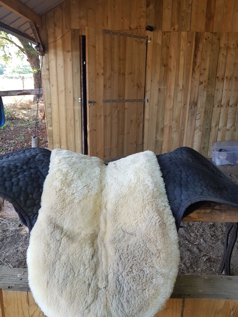 Pony size, equivalent to a 17/17.5 inch saddle and suitable for horses. A very slight mark on the straps. Additional photos if needed.