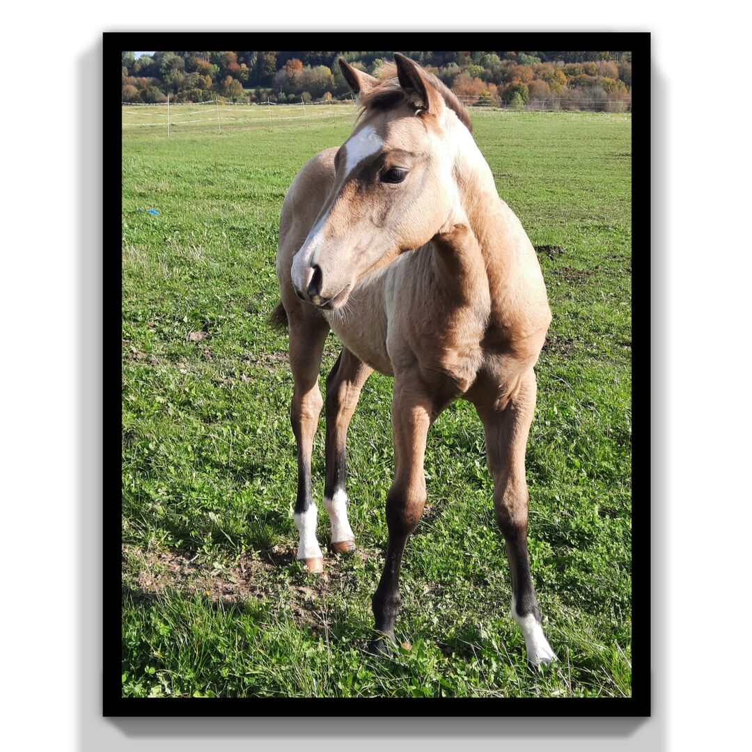 Beautiful Quarter Horse gelding born 2024 - "MAGIC STEELDUST" is a really cool guy. He was born in June 2024 and is currently running in the paddock with his buddy "Faust". He became a gelding in April 2025 to make it easier for him to find a new family. Dusty is looking for a new sphere of activity, preferably in a nice herd. Dusty is buckskin and with an exceptionally beautiful pattern on his face, he is a dream of a horse. Dusty is also equipped with a wonderfully sloping shoulder for a far-reaching gait, as well as super powerful hindquarters for light-footed and agile maneuvers. He promises to be an enthusiastic sport horse. His absolutely correct conformation and good foundation offer the best prerequisites for a long and healthy equine life. Like his half-siblings, he is expected to grow relatively tall (approx. 154 cm) and strong. His character is very calm and strong-nerved, he also walks well alone in the paddock, is halter trained and gives hooves - in other words, he is trained according to his age. The sire: Hossa Dunit Maxen is a Grullo, the dam: Hollywood Blue Ice is Perlino. The original Certificate of Registration is already available. Price 6.800 € VB - still foal price - worth a look! Please call or simply contact us via cell phone 015780273780. And feel free to visit us in the Rhön.