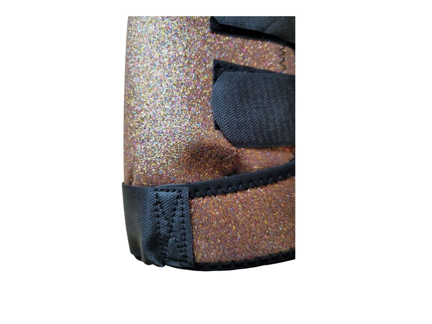 Experience the luxurious charm of Chew's brilliant golden diamond gaiters in size L, which not only impress with their sparkling design, but also with their breathable texture. These high-quality gaiters offer your horse not only an attractive look, but also a high level of comfort with every movement. Ideal for discerning riders who value quality and aesthetics. - Warming - Protective - Firm hold - Size L - 30 cm - Horse 1,55-1,65 cm - Designer Chew - Synthetic chew