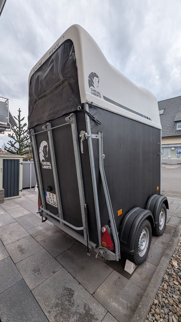 Cheval Liberté 1.5 GT horse trailer - Selling my horse trailer from Cheval Liberté. Permissible total weight 1400kg Comfort package (upholstery on the side walls, bars adjustable in two heights) Aluminum floor In addition, an Ifor Williams tack room was fitted to the door at the dealer. Tires are 2 years old and have maybe 100km on them First registration October 2013, first hand, TÜV until November 25, always free of defects. A few years ago, some moisture penetrated the attachment for the tarpaulin on the right side, stability and functionality are not affected by this, was never TÜV relevant. In good condition for its age (see pictures)