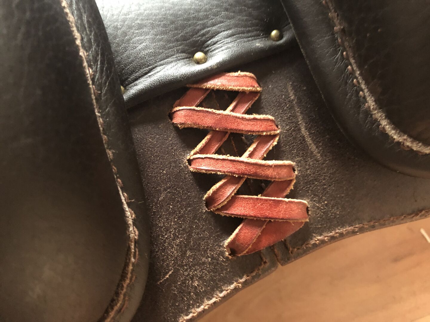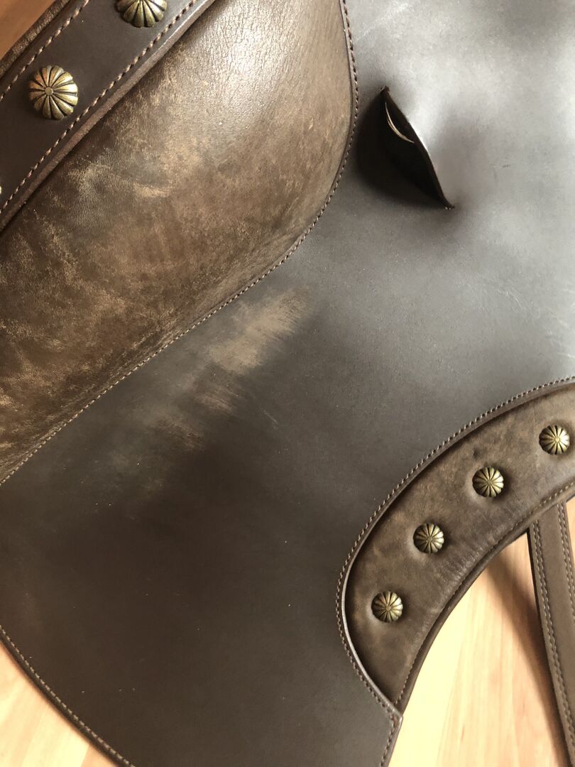 The marks from the stirrup leathers on the saddle flap are there because I decided after a horror experience: I'd rather my saddle had such "signs of wear and tear" than my horse having bruises from the stirrup leathers. Of course, the saddle has a thick intermediate flap, but I won't take any more risks. Overall, it's in great shape - even, symmetrical, soft padding (October 23), hardly any worn girth straps, etc.