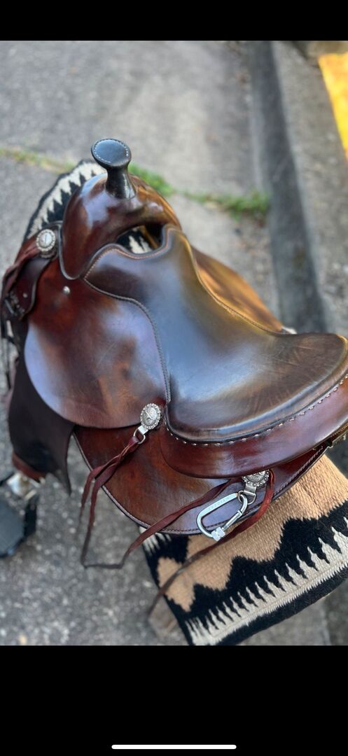 Deuber Trailrider 1031 very short 02 Quarterhorse - Selling my Deuber Trailrider. Chamber width 02 Quarterhorse Seat size 16 Very short only 60 cm total length Classic line The tree number 1031 from Deuber is installed Wood covered with rawhide 6 leather conchas. I have put additional conchas on it C ring inskirt on 7/8 position Used but no defects. ‼️Die Elastostep stirrups are not dabei‼️. The original Deuber wooden stirrups will be sent. No shipping on trial. Shipping by DHL parcel 19,99 euro