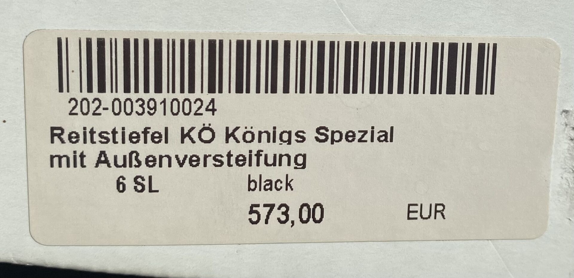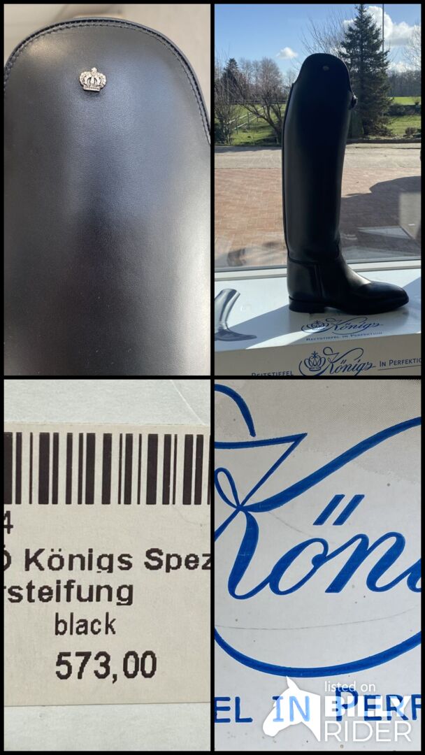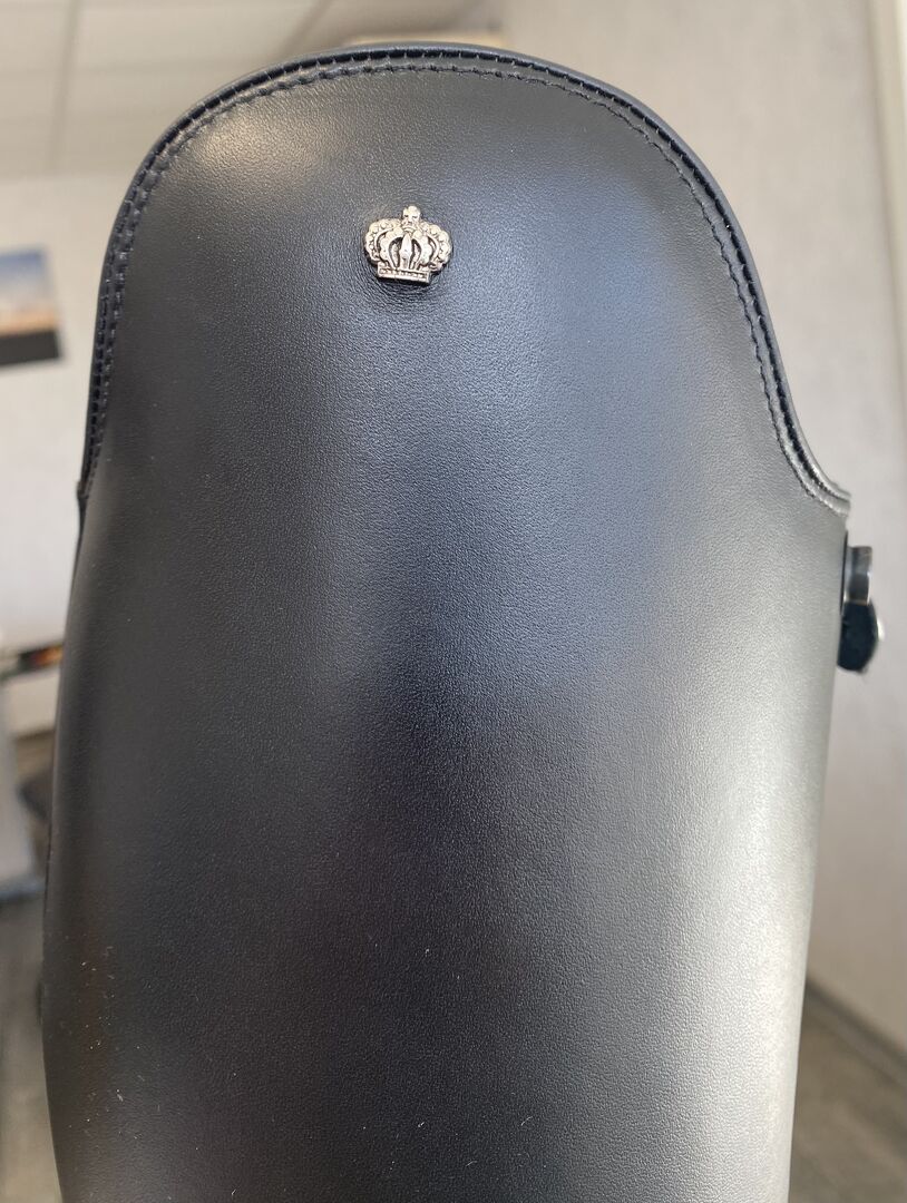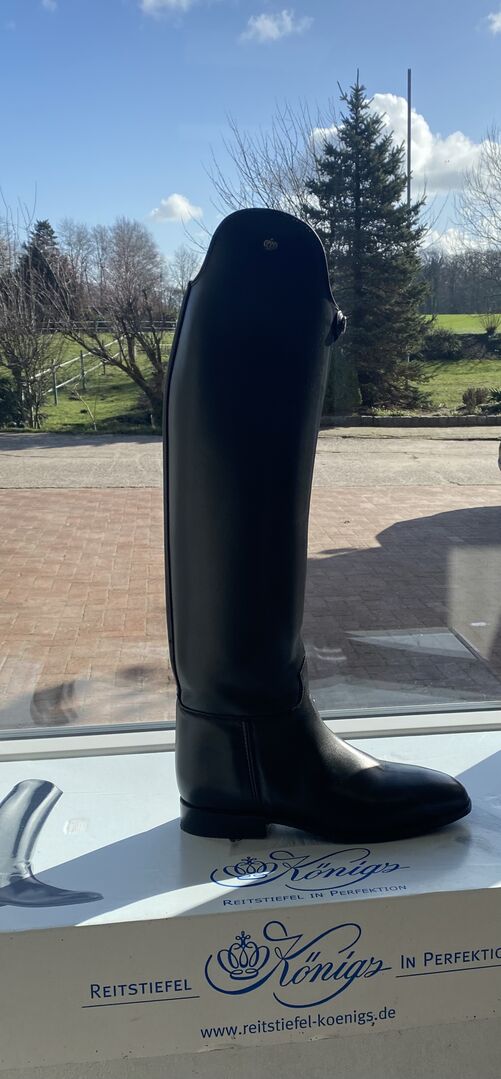 Dressage boots Königs Special - Sell my unworn riding boot from the company Königs model Favorit Special. Black full cowhide with outside reinforcement. Dressage bow with king crown. Original box present.