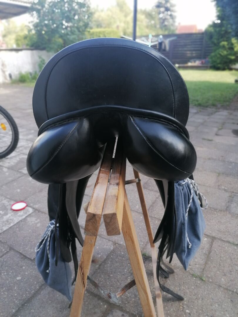 Dressage saddle - Selling an 18 inch dressage saddle, dimensions according to the photos. It is a deluxe saddle of the English brand. Saddle was on a large Hanoverian with a lot of withers. I bought the saddle used from a saddler about 2 years ago, it was not used much as our horse was not ridden much due to illness. The leather is very soft. The saddle is in a good and well-kept condition. The large knee rolls ensure a secure fit in the saddle.
