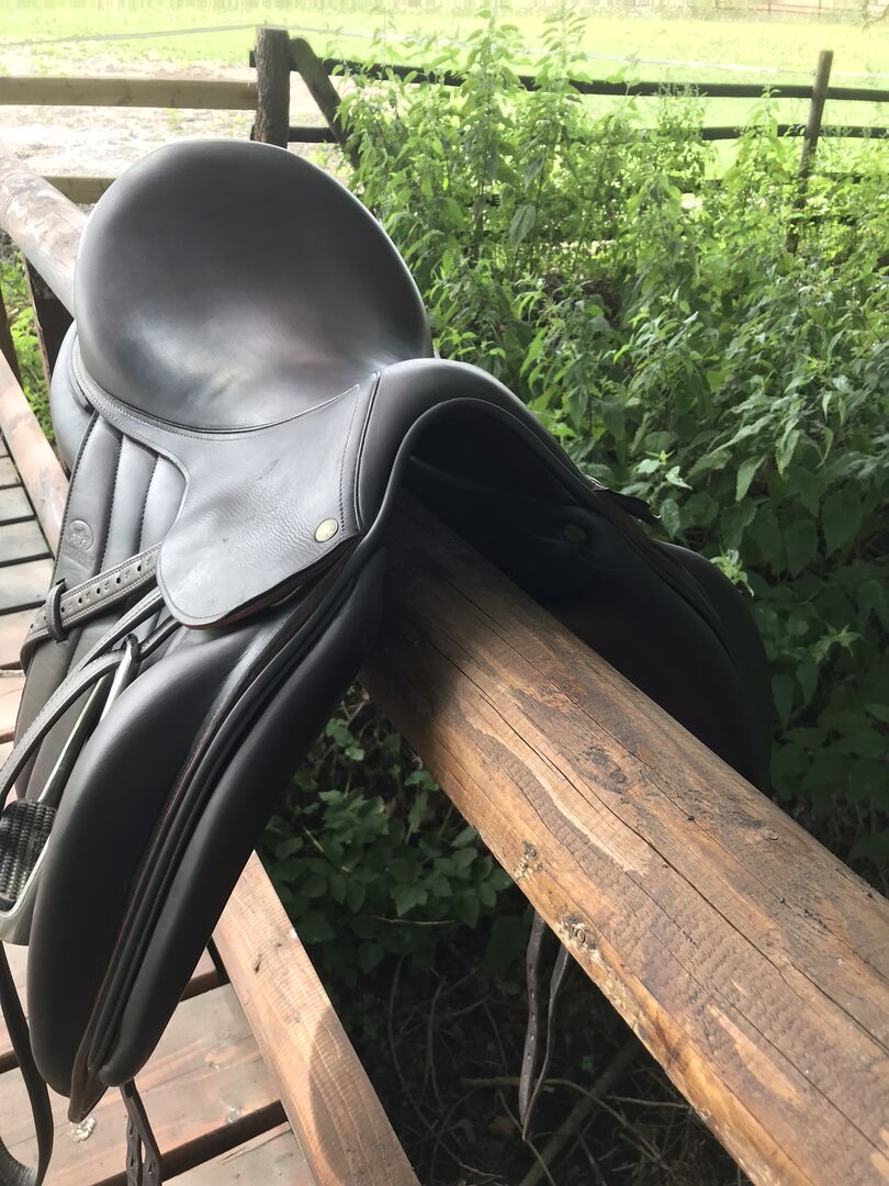 - Dressage saddle from the saddlery Devoucoux,17,5 inch ,medium chamber ,brown ,used ,but well maintained,