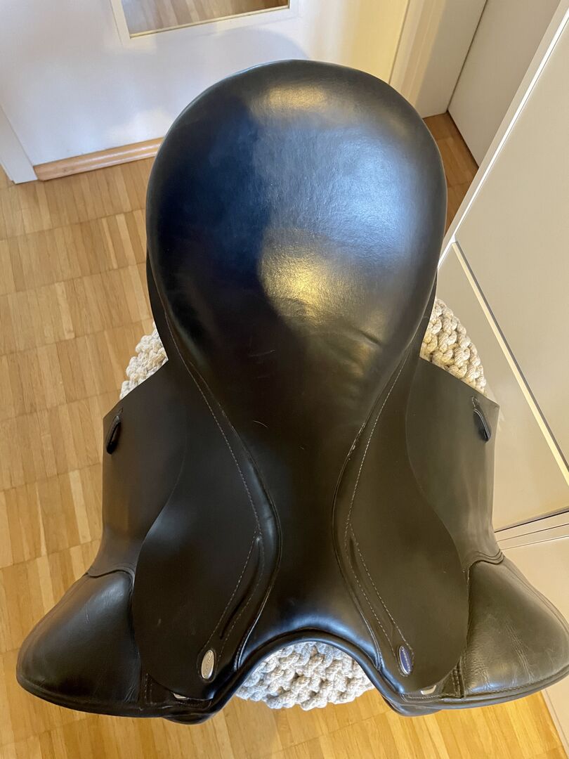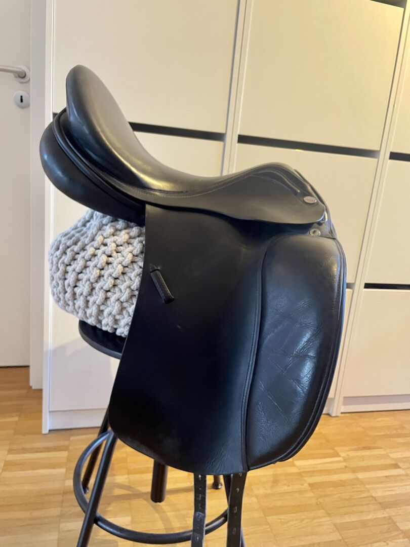 Dressage saddle Euroriding/Prestige Emilio 18/34 +2 cm - Very well maintained and well preserved dressage saddle model Emilio from Euroriding, made by Prestige. Seat size 18 inch Gullet width original 34, actual approx. 36 color black French panels + 2 cm 2022 checked by saddler Inspection and trial against deposit of the purchase price in Hamburg possible. No shipping for trial Shipping possible if costs are paid Only secure payment methods I will gladly answer all questions