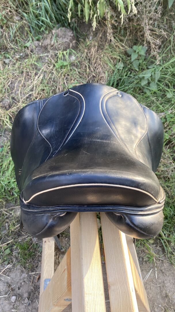 Dressage saddle Maxflex Leonard 17.5-18 inch - I am selling my Max Flex dressage saddle 17.5-18 inches. It was on a very wide pony mare. My saddler has had a quick look at the tree which is still straight. It needs to be padded again and the girth straps could also be replaced, but at the moment they are not yet safety-relevant. The highlight is the adjustable Velcro straps.