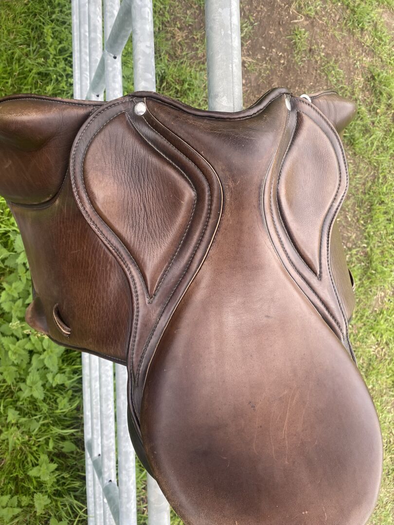 Lovely saddle, selling as seat size was a little too small. Molds to the horses natural shape. Defect on one stirrup bar, this was not disclosed to me when I bought it. Few cat scratches present on the leather, otherwise good condition. Over 700£ new.