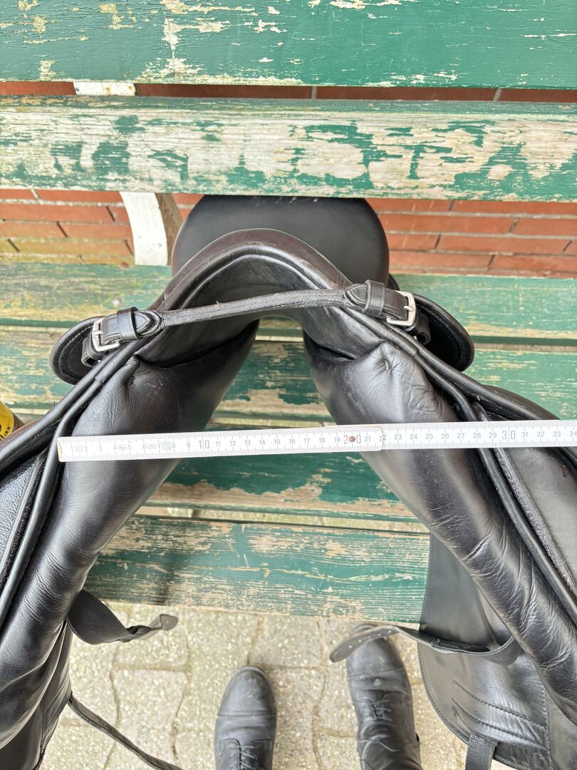 Medium width chamber - cold adjustable Fit: for horses with a lot of shoulder and a straight back line Very well-kept condition Doubled cowhide and calfskin Wedge pad filled with wool Velcro pads Deep seat Long girth straps New price: 4700€
