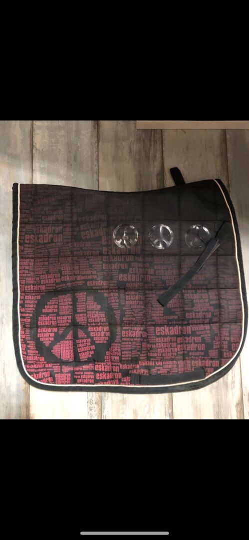 Eskadron Peace saddle pad - Size: Wb/Dl Brand: Eskadron Condition: used, sewn places on the saddle girth piece. But you can not see under the saddle Color: Navy, Pink