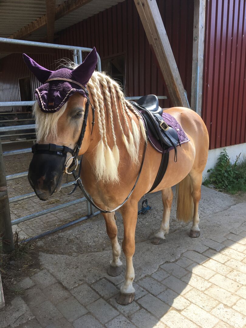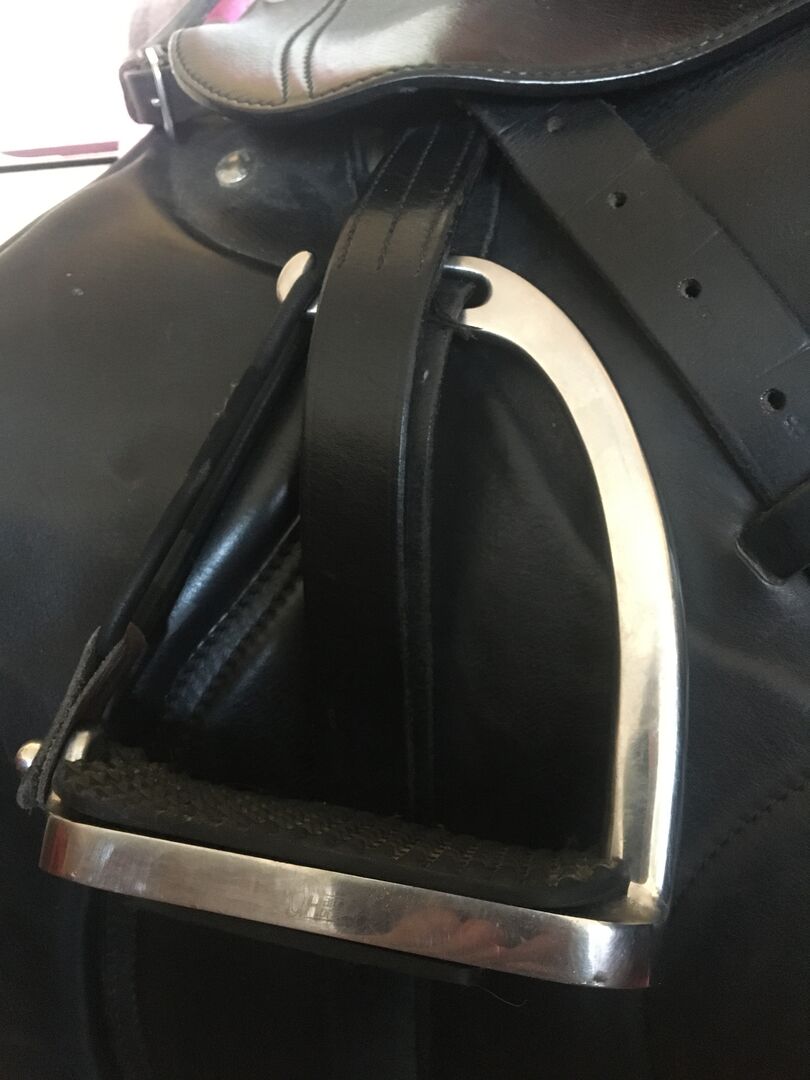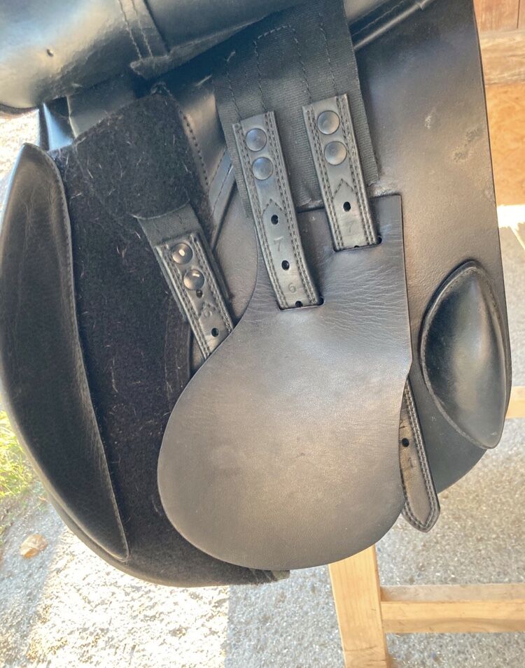 Included are stirrup leathers with safety stirrups (new rubber rings and leather flaps are included) and a girth from Kieffer (125 cm).