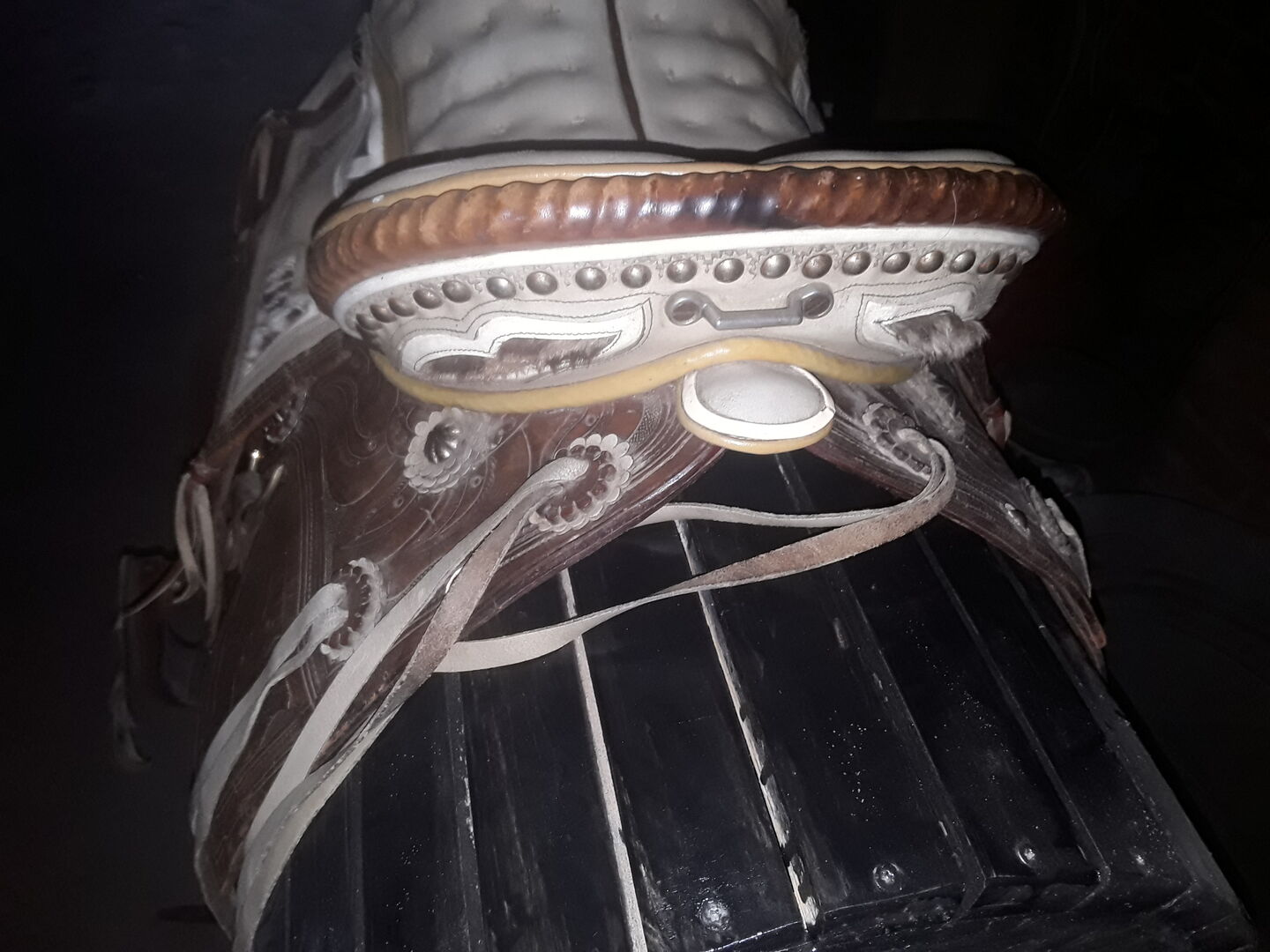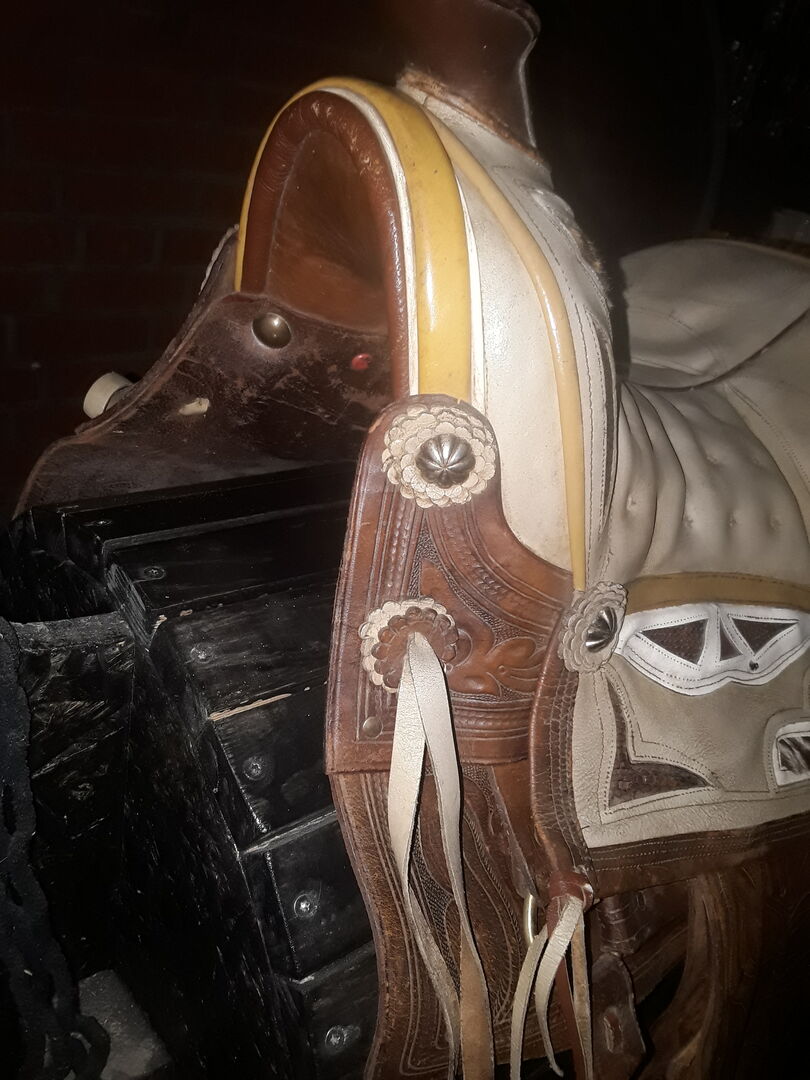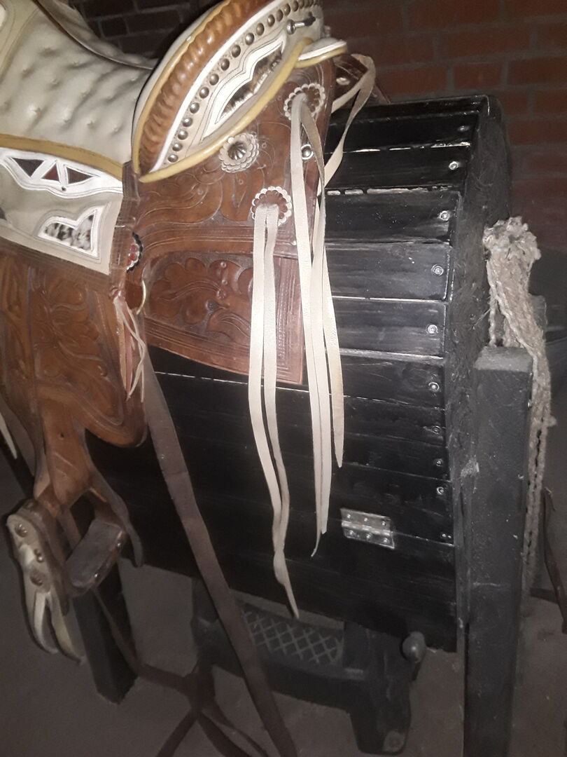 Exceptional rare western saddle, antique, decoration, refurbishment! - For sale a used with signs of wear present antique exceptional rare western saddle. Narrow chamber, maybe for a pony? First bought by myself. Fits my pony, 1.42m but the seat is too small for me. Saddle is a mega eye-catcher. According to the previous owner, it came from an antique shop. The saddle has some signs of use due to its age, which is unfortunately unknown to me. A piece of leather is torn, but would not have bothered me while riding. ( according to the previous owner, armadillo leather, plush/fur ) I am selling it expressly as decoration or to restore it, which should be possible. Therefore cheaper from the price Inquiries like the last price or without a friendly salutation will not be answered. But you can talk about everything! Private sale no guarantee or return no warranty PayPal available