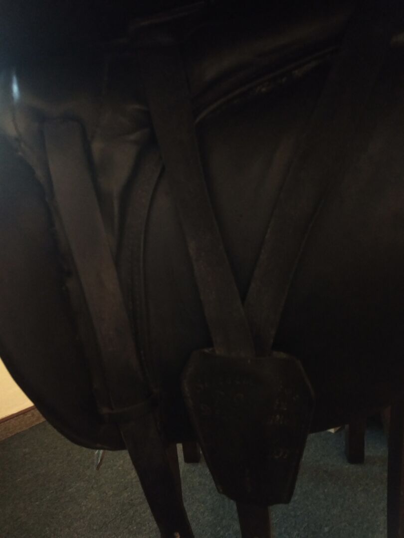 1 packing ring eyelet is missing, see picture. Can easily be replaced by a saddler if necessary. Please refer to the pictures for the actual contact length and condition. I rode this saddle for 2 years, alternating with the Rappenhof saddle also on offer. Stored correctly since then, but unused
