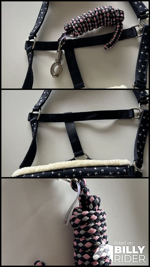 Halter COB with rope - Selling a halter with matching rope! Size COB In navy. Noseband in the colors of the rope. Nose and neck are with fur. Shipping is possible for a fee.