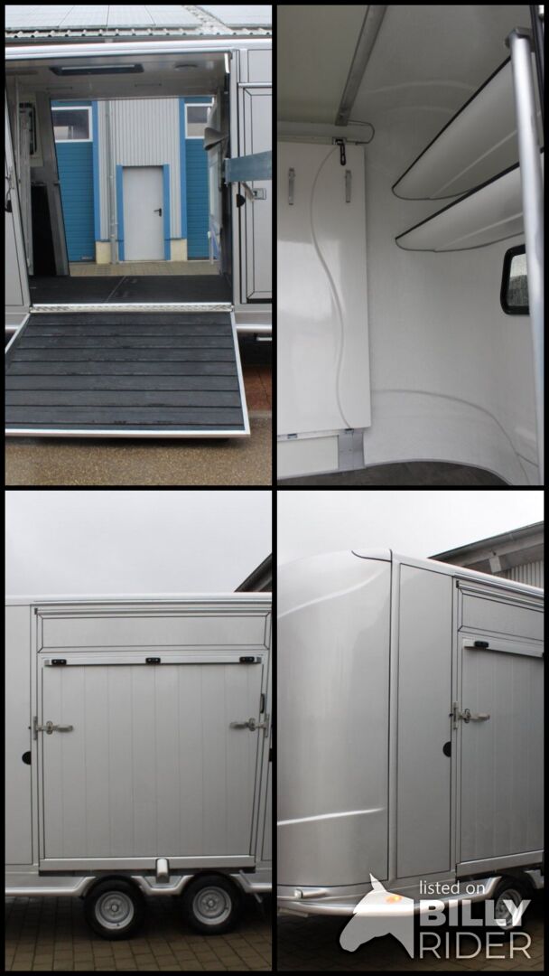 Horse trailer stallion equipment special model 2 side ramps left and right to load your horses with the new special model you can now load or unload your horses individually load or unload So they can now to each horse individually from each side and through the large rear door you have another possibility to get to each horse individually with the large tack room with 2 storage trays and a folding bed they have enough storage space available and can also rest times on the folding bed Permissible total weight 2,7t Piece load 150KG Immediately available Viewing only after appointment Price on request Inquiries under 01606106131--00491606106131