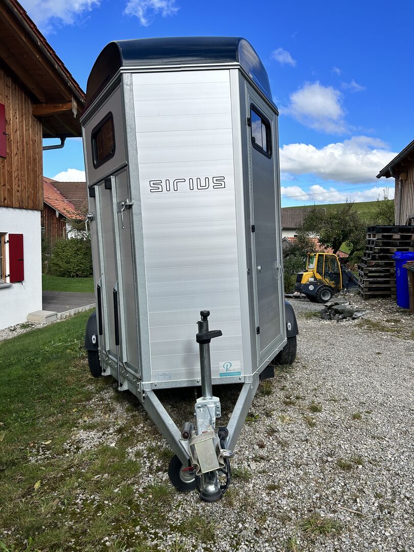 Horse trailer for sale - Very good condition. Only driven about 100km. Suitable for large/heavy horses (2.5m high, Gross vehicle weight 2500kg). Aluminum sandwich floor, Sealed fabric rubber floor, Ramp/door combination, Rubber pants and treads on ramp, FRONTAUSSTIEG, Aluminum walls, Center split partition, Extra high entry door, Sliding windows on sides with grills, Adjustable stall bars, Ergonomic padded chest bars, Blue polyester roof with opening roof vent, Interior lighting, Tarpaulin roller blind, Design mudguards, Alko axles, Hot-dip galvanized frame with welded longitudinal and cross beams, 15'' wheels, Automatic jockey wheel, Step protection on the side walls, Body protection, Overrun device with automatic reverse, 100km/h approval