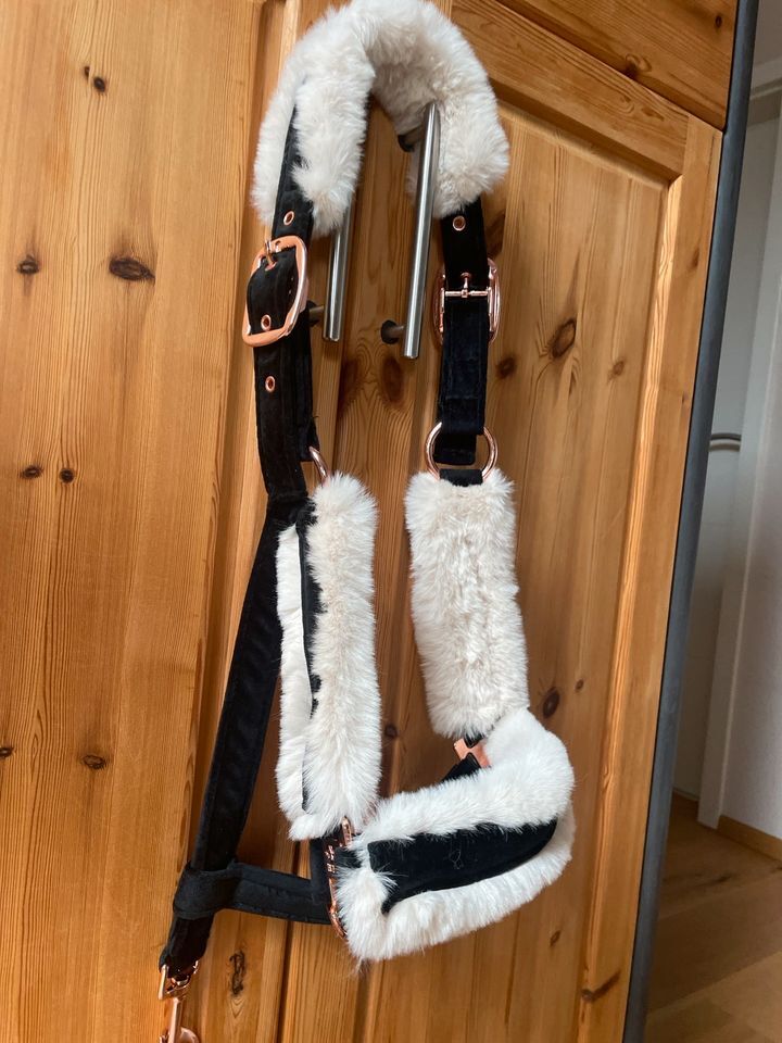 HV POLO Teddy fur halter - Offer new halter of the company HV Polo. Was only for fitting on the horse, otherwise it hung in the basement. Therefore, there are also no signs of use. Is padded on neck, nose and sides with teddy fur, which is super soft.