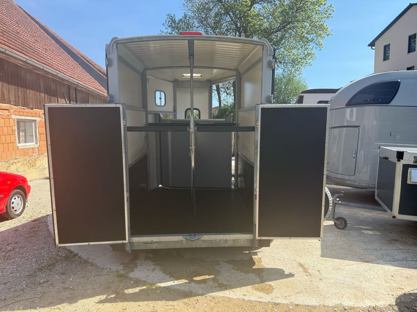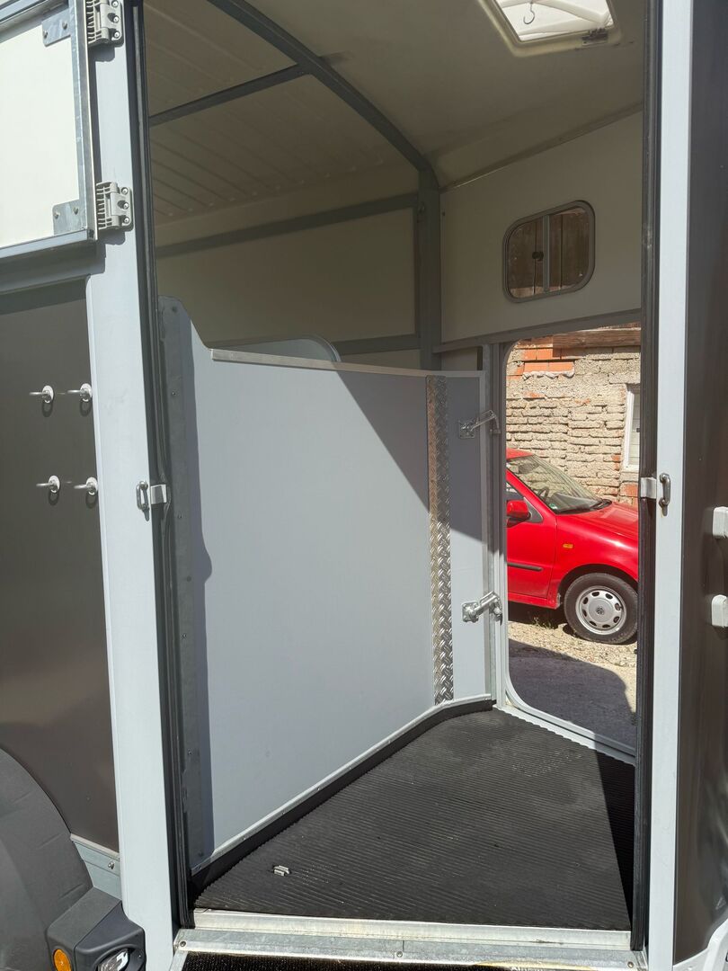 - First registration: 2016 - Permissible total weight: 2,600kg - Unladen weight: 954kg - TÜV until 02/2026 - SPECIAL DESIGN: Extra partition wall for the front area (easily removable) - Door-ramp combination - 100km/h approval - Spare wheel - Front viewing window - Front exit - Side window - Panic system - Aluminum floor - Pivoting center partition