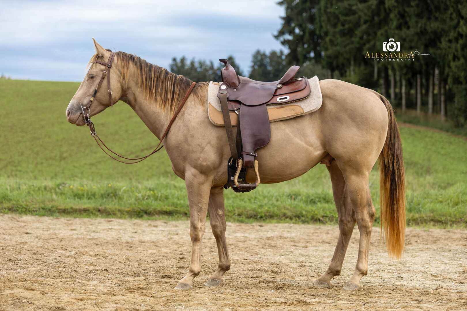 Infinit is currently stabled in a mixed-age herd, but he is also familiar with box stabling with paddock and daily paddock access. Of course, he has been regularly wormed and presented to the farrier (barehoof) and has been vaccinated in line with competition requirements. He is 6 panel N\N tested through his parents. Of course he has full AQHA papers, which makes him interesting for breeding. His pedigree includes foundation lines and top sires such as "Hello Shiner".