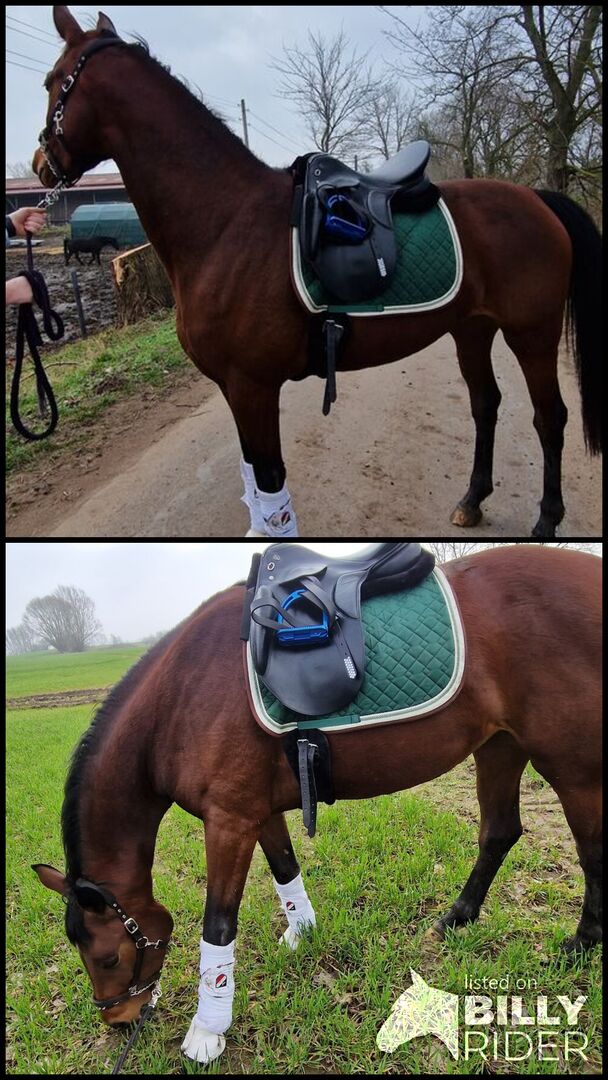 She is always relaxed and friendly when being groomed, you can sit under her belly and she won't do anything. She can also be bandaged without any problems. A little nervous in the field, generally very tense when new. She needs her time.