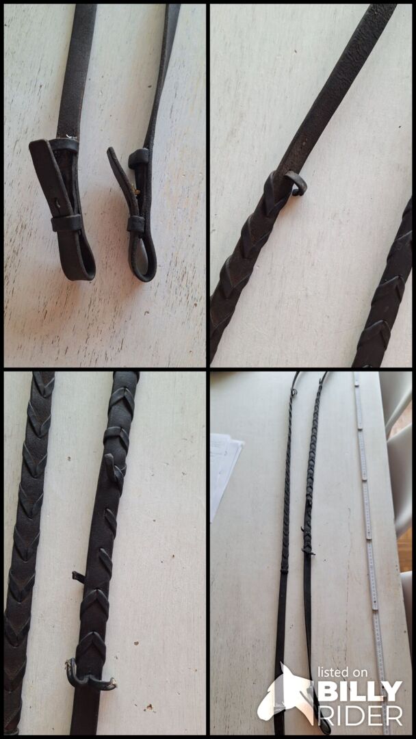 Leather reins brown - Brown leather reins with braided bars. See photos for defects