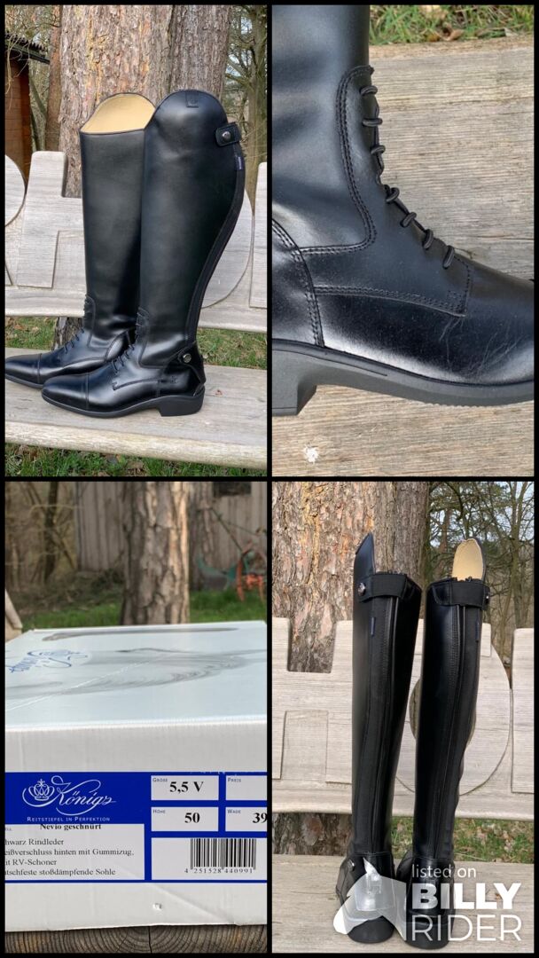 Leather riding boots Königs Nevio laced - New and original packaging! Super chic and exclusive leather riding boots from the renowned manufacturer Königs. Allrounder for children, teenagers and adults elastic instep lacing. No return made of cowhide waisted fit embossed king emblem zipper in the back to the bottom zipper protector with spur holder Non-slip, shock-absorbing sole for maximum comfort Removable anatomical footbed for size adjustment The boot is cut very tight at the ankle, therefore only suitable for slim and narrow feet