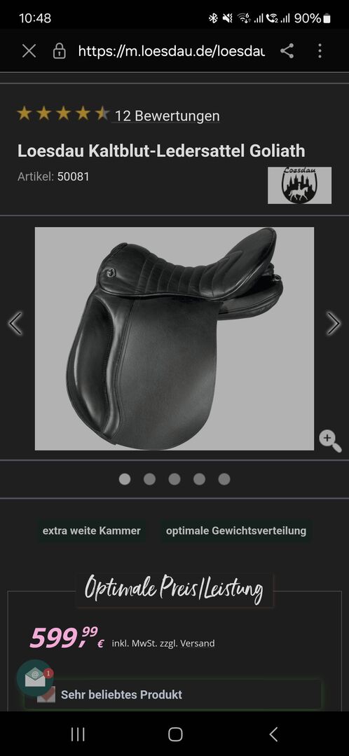 Hi Dana, I am interested in your ad 'Loesdau Kaltblut - Ledersattel Goliath / Loesdau'. Please contact me! 😀