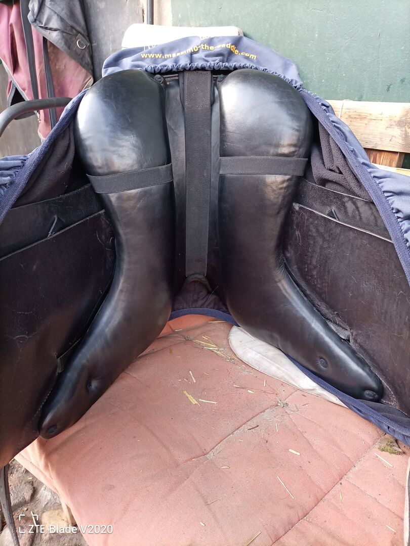 Massimo Dressage II, 17,5 FK - Wide vertebral canal, short contact surface, ideal for short round ribbed ponies u horses with little withers, KW 42, fits pony that has 34 KW at EURORIDING. Chamber cold adjustable on site by saddler. Freshly padded.