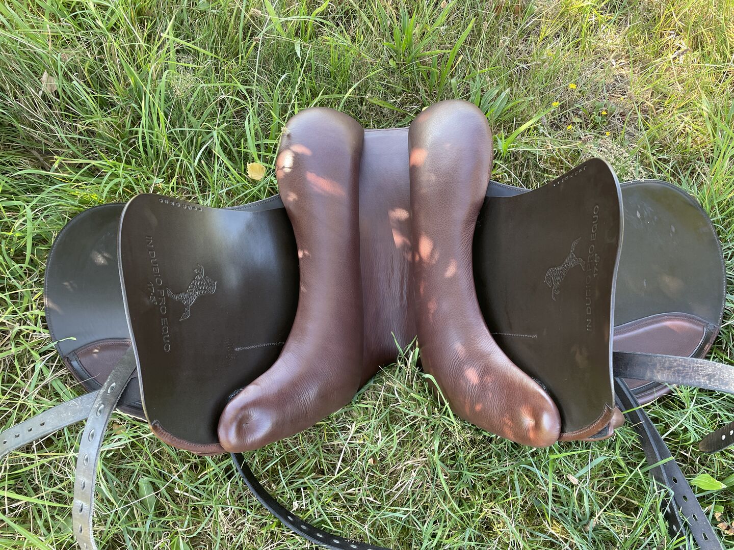 Morgenroth Dressage Saddle Classic - Sell beautiful brown dressage saddle from the company Morgenroth. It is the Classic model. Seat size 17,5" Adjustable gullet plate Lots of shoulder freedom Was on a very short Lusitano