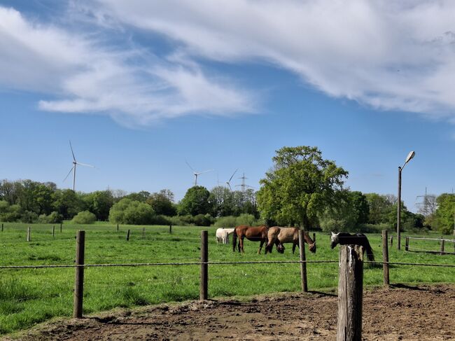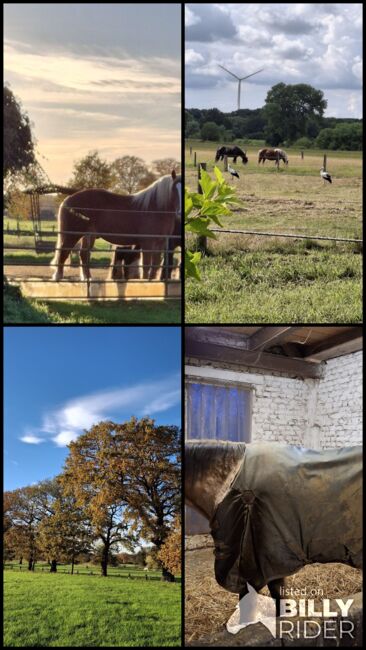 Paddock box - Paddock box incl. hay and straw, Concentrated feed is provided by the horse owner, incl. putting in and out, prepared feed is fed in the morning and evening, Fixed group of max. 6 horses, large, well-tended pastures from approx. mid-April to mid-November, group winter paddock incl. hay feeding exercise arena, lunging circle, possibility to ride out The stable community shares the mowing of the driveway to the pastures during the grazing periods (once every 6 weeks) as well as the mowing of the winter paddock in winter and the provision of water on frosty days (one day a week and one Sunday every 6 weeks). The stable is located near Marl-Brassert. Stable help is available through the stable community.