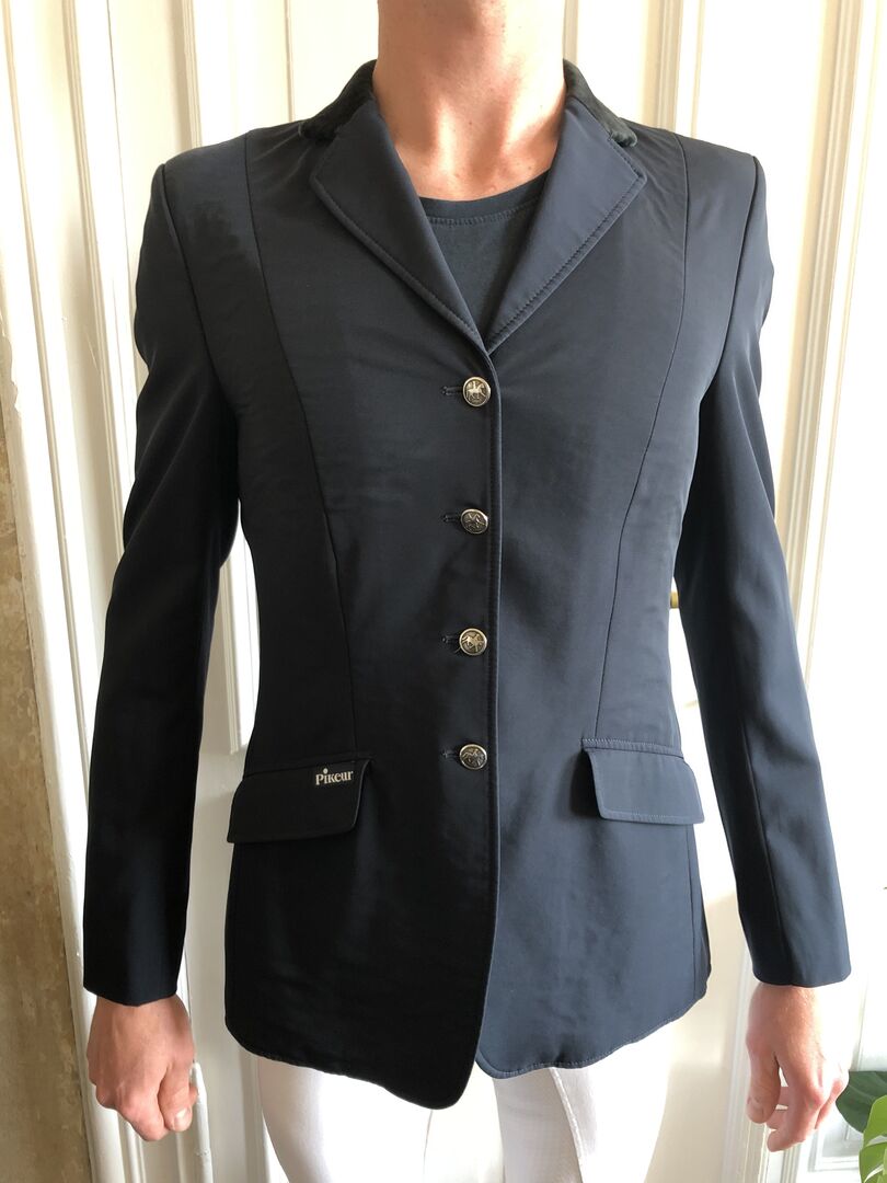 Pikeur jacket size 48/S - Hello, Sell here a great tournament jacket brand Pikeur. The blue jacket is worn but in top condition. The material allows a machine wash at 30 degrees. Size S /48 (I am 186). Narrow cut with velvet collar.
