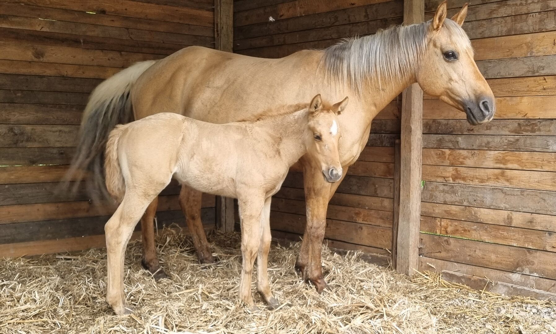 Quarter Horse mare filly (possibly homozygous DUN) - Name: Kira Born: 22.04.2023 Moved out end of October at weaning age with AQHA paper and DQHA passport.