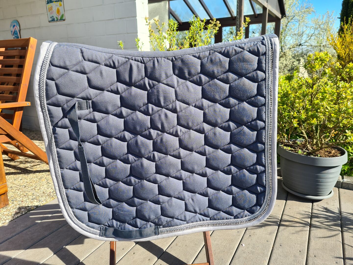 Saddle pad dressage warmblood - Offer gray dressage saddle pad from HKM with glittering stones on edge. Was rarely used. A few hairs did not go out even when washing. Shipping costs refer to insured shipping. Private sale. No guarantee and no return
