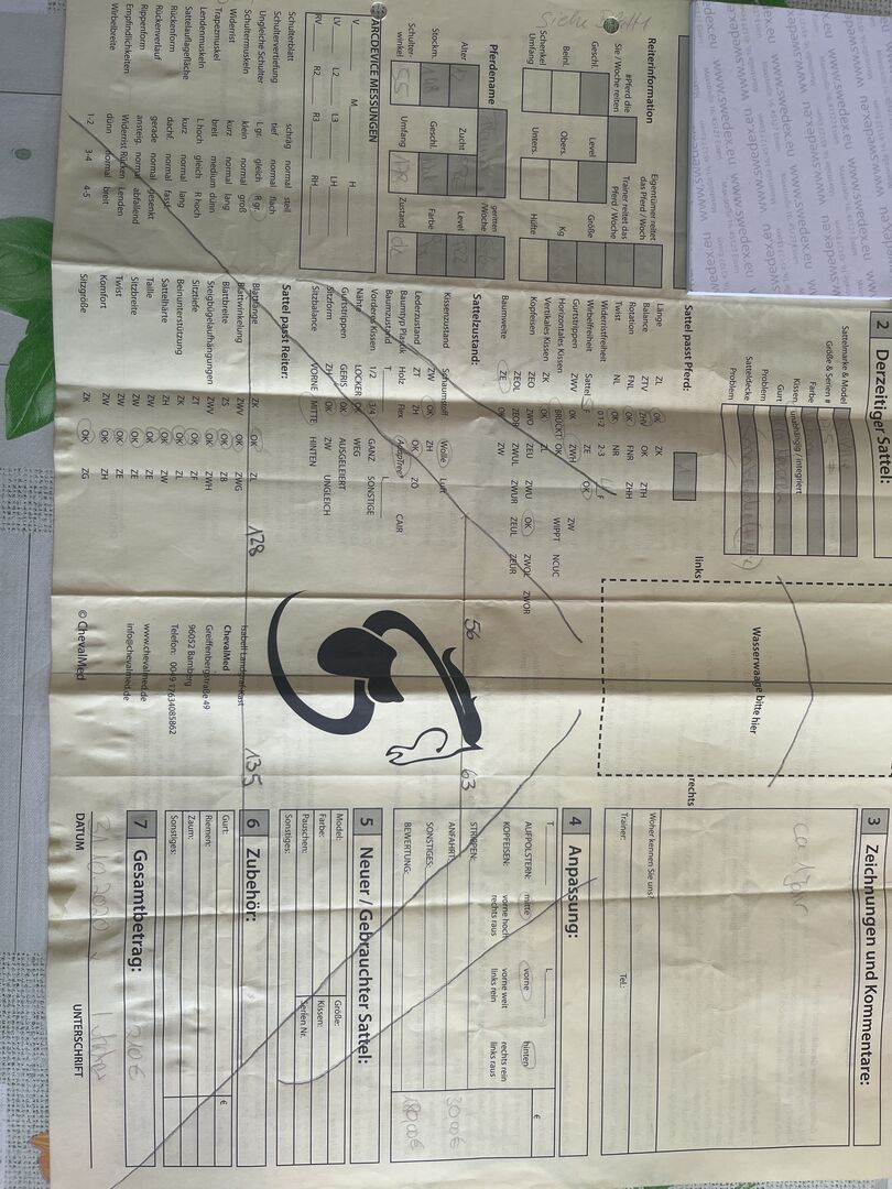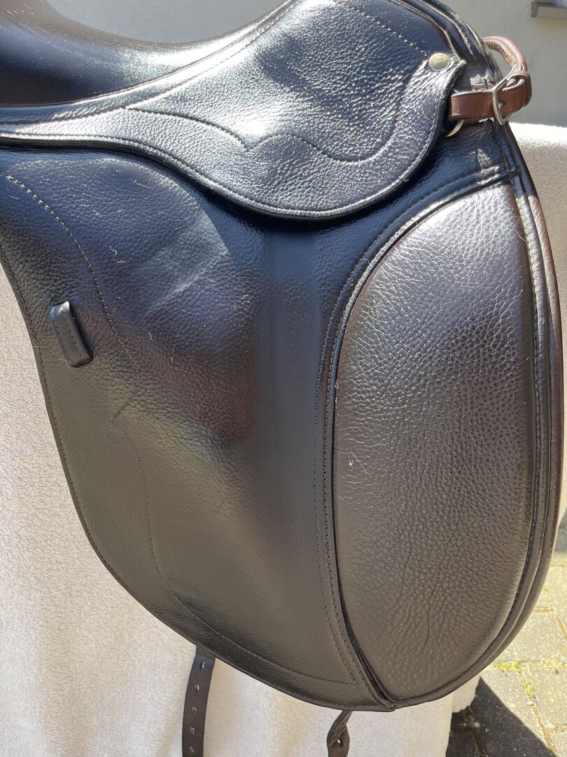 Schleese dressage saddle AS Rike 2-17" - I am selling my dressage saddle by Schleese Model AS Rike 17" Color: havana brown, stitching: havana brown, short wedge panels, doubled leather The saddle was used sporadically on my PRE until 2021, due to illness of me and the horse the saddle has only been used moderately. It shows normal signs of use but is otherwise in top condition. Purchase price was 2950€. The saddle can be fitted by a saddler without any problems. It is adjustable in the chamber. I had it checked regularly when I was using it. The measurements from the last saddle fitting can be seen in the last photo.