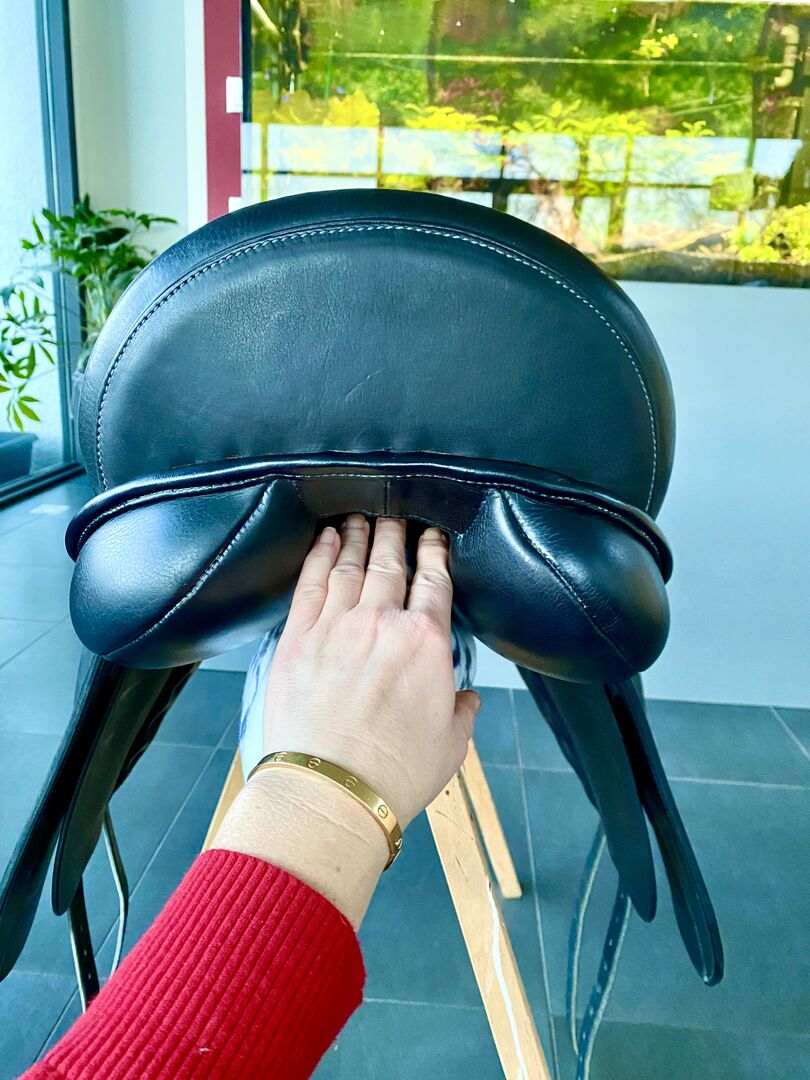 The Catagena dressage saddle is a newly developed dressage saddle that meets the highest standards of quality, design and comfort. The seat offers the perfect combination of safety and optimum contact with the horse thanks to its depth and very gently running waist. The specially cut pommels and the soft knee area offer the rider optimum support and comfort. The rider feels an increased grip due to the specially oiled leather. The saddle flaps are cut slightly to the rear and therefore also offer horses with pronounced shoulders sufficient freedom of movement. The wide saddle channel and the short panels, which are rounded off at the rear, provide particularly good contact with the horse. The saddle can be altered to five different widths by changing the gullet blocks. The saddle panels are filled with a synthetic silicone wool which does not knot and has a shock-absorbing effect. Between the leather and wool is a breathable and cushioning layer.