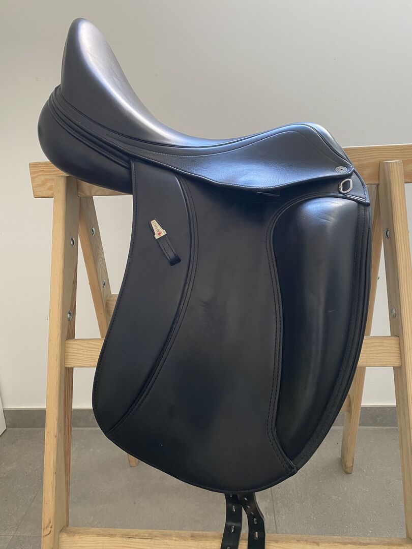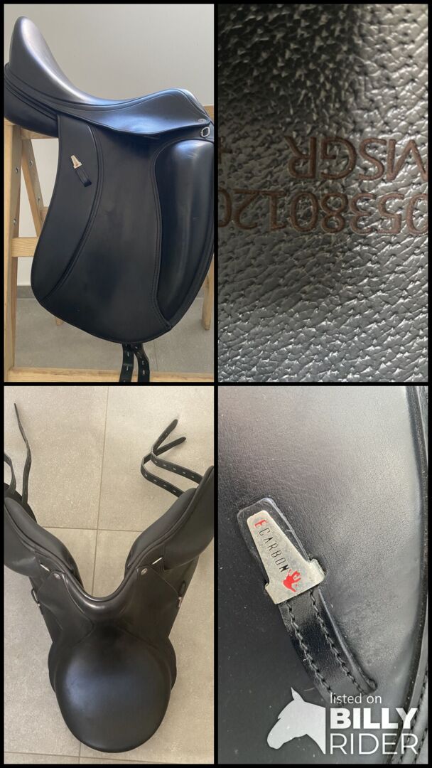 Equipe Glamour Mono with Grip Trim and Cheeks Black Carbon tree for extra closeness to the horse and direct influence of the rider 17" seat N normal long saddle flap Chamber width +2 this is medium width Panel +1 means that the panel is raised at the back. V girth