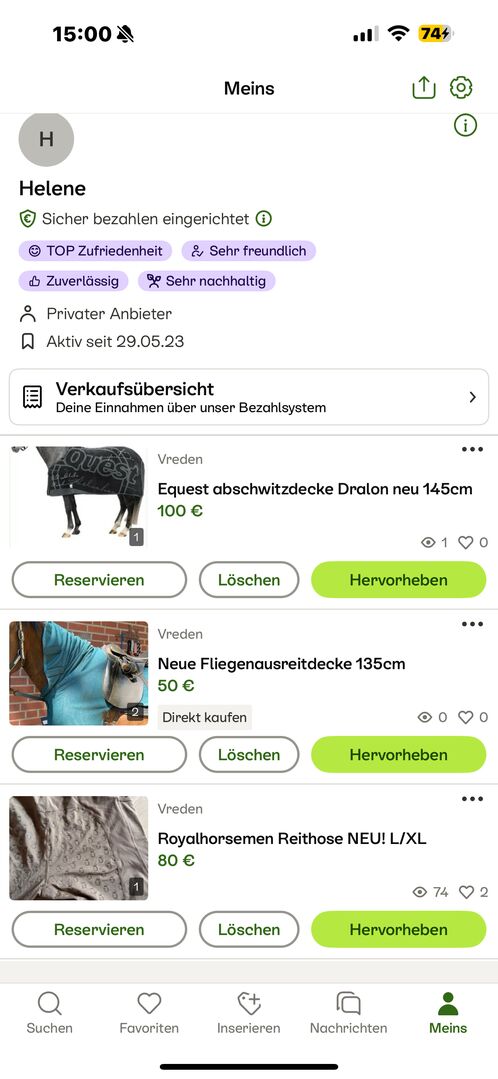I sell this blanket in 145cm! Is new because unfortunately I have out of stock with the size! 100€ incl. shipping otherwise also exchange for older Eskadron sets in VS