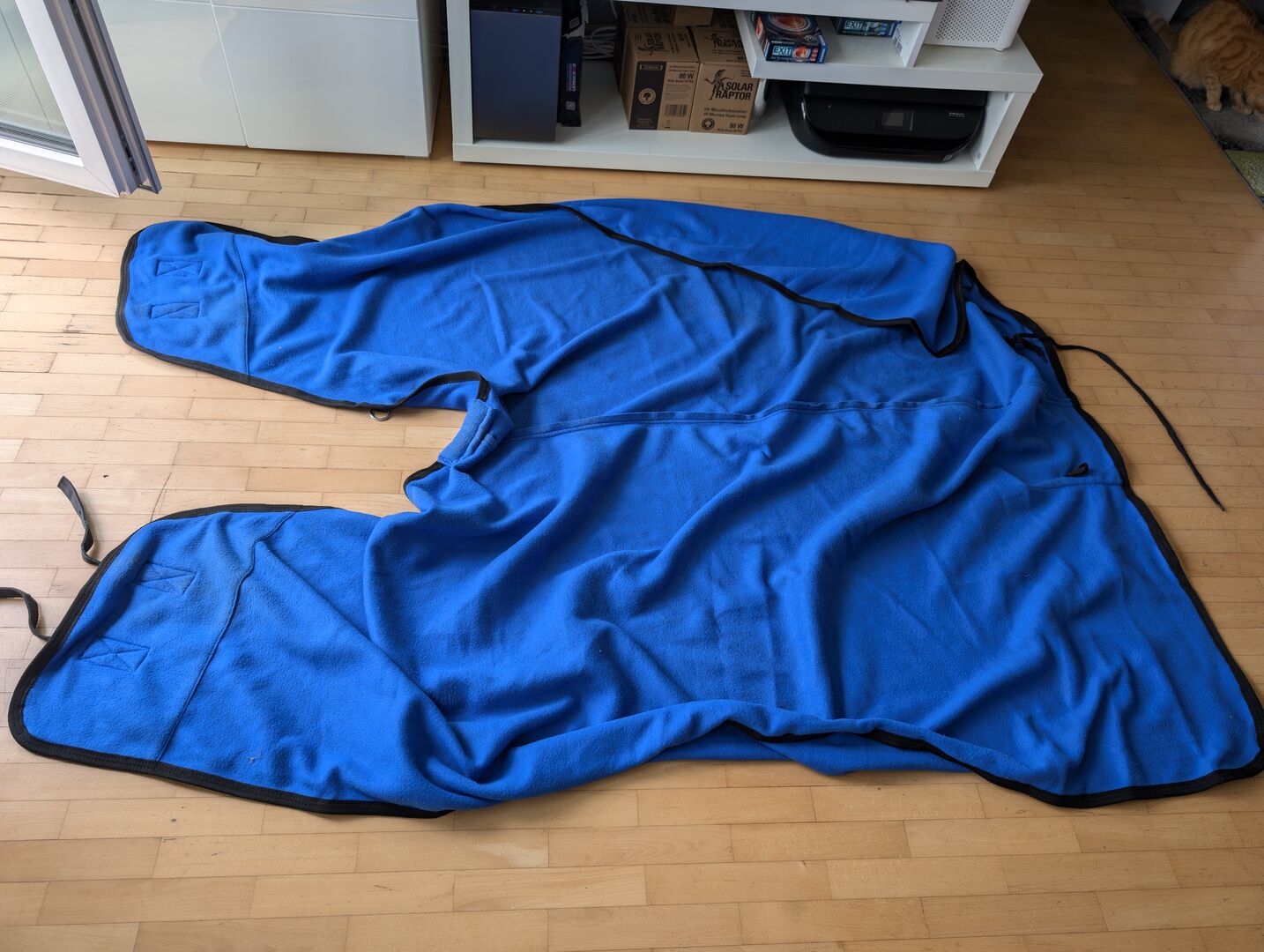 Sweat rug + neck piece 145 - Hello, I am selling a sweat rug in size 145 in the color royal blue with neck part. The rug is practically new, has only been on the horse once and since then in the cellar as a "spare". It is completely intact without holes or similar.