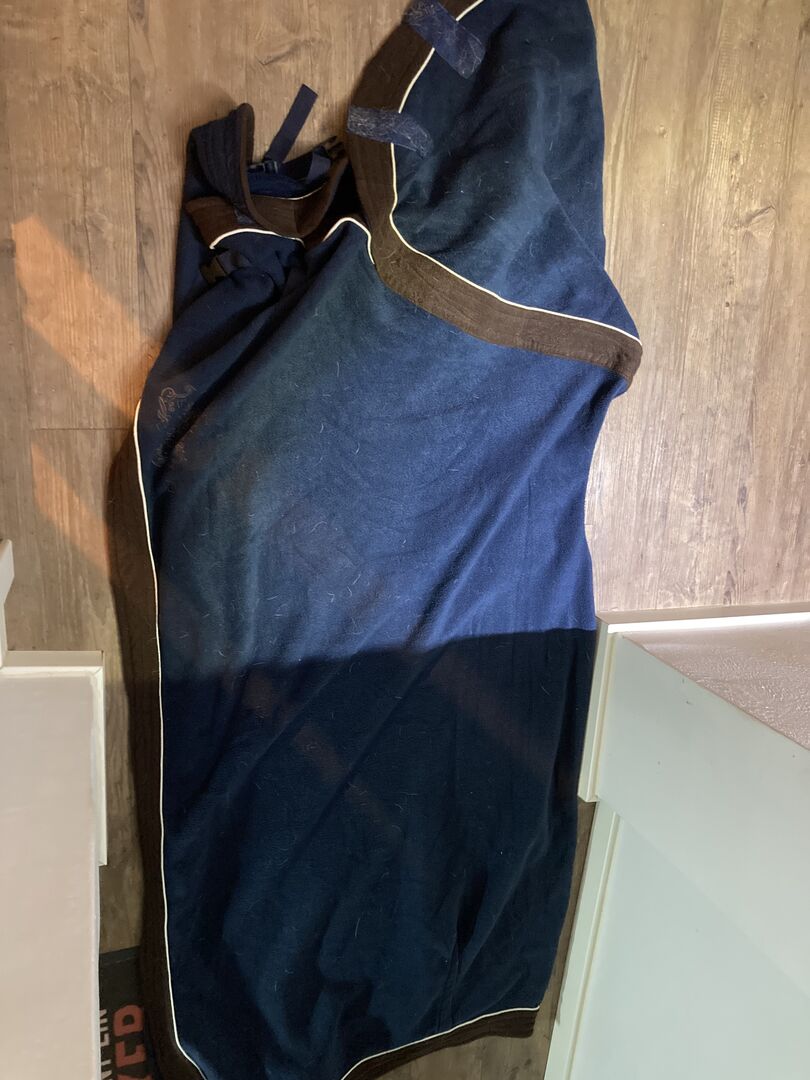 sweat rug with neck piece - Sell a used sweat rug with neck part, I bought it used myself . Unfortunately does not fit . There are a few hairs on the Velcro but it still holds. Velcro on the neck part, and on the chest on the chest plus buckles. No tears or holes, top condition Color blue with brown Shipping possible