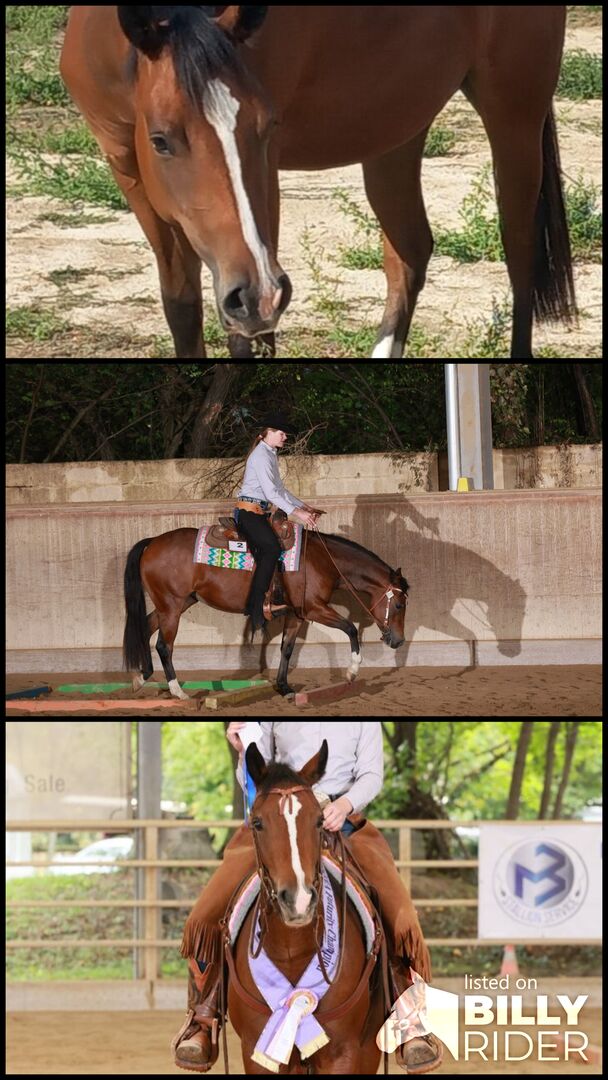 Sweet quarter mare - 🌟Super sweet Bay QH mare from 2022 🌟 great reining paper (Black Gotta G*n x Hollywoodstinseltown) 🌟 people-oriented and cuddly 🌟 very social in the group, knows box & open stable 🌟 well-behaved when loading, driving, vet, farrier and out and about 🌟 knows reining maneuver basics, but our focus so far has been on trail and ranch riding 🌟 Great in the field, also alone and as a hand horse 🌟 Futurity champion in ranch riding at her very first show at the end of September 🌟 barehoof, never been sick, no naughtiness 🌟 easy to ride, always motivated and cooperative 🌟 of course regularly vaccinated, wormed, at the chiro & dentist