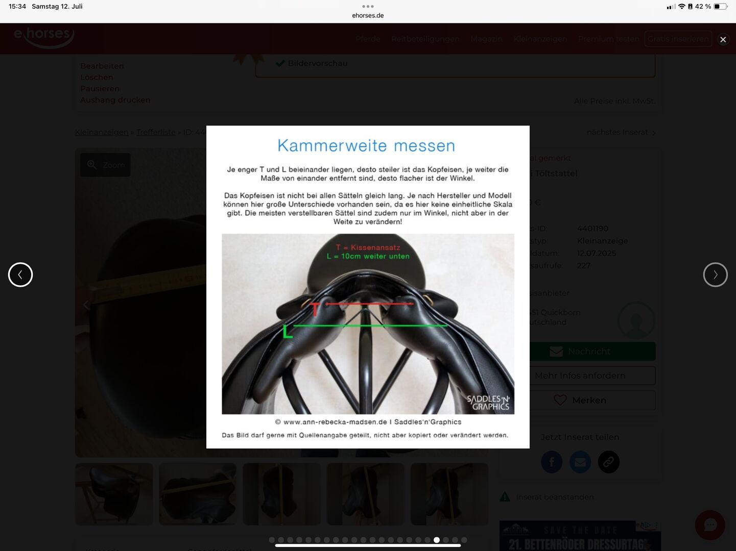 Töltsattel from Bagari - Black tolt saddle from Bagari for Icelandic horses in good condition. This high-quality leather saddle is specially designed for tölt and offers optimum comfort and safety when riding. With its elegant black color and Bagari brand logo, it is not only functional but also aesthetically pleasing. Ideal for riders looking for a reliable saddle for their Icelandic horse. Bagari is a brand of Hilbar. Second owner. Y-girth for girthing. Eyelets for snaffles slightly concealed at the front. Slight signs of wear on the saddle flap. Dimensions (measured according to diagram): Size: 18 inches Seat row: 40 cm Saddle flap: 36 cm saddle panel: 44 cm