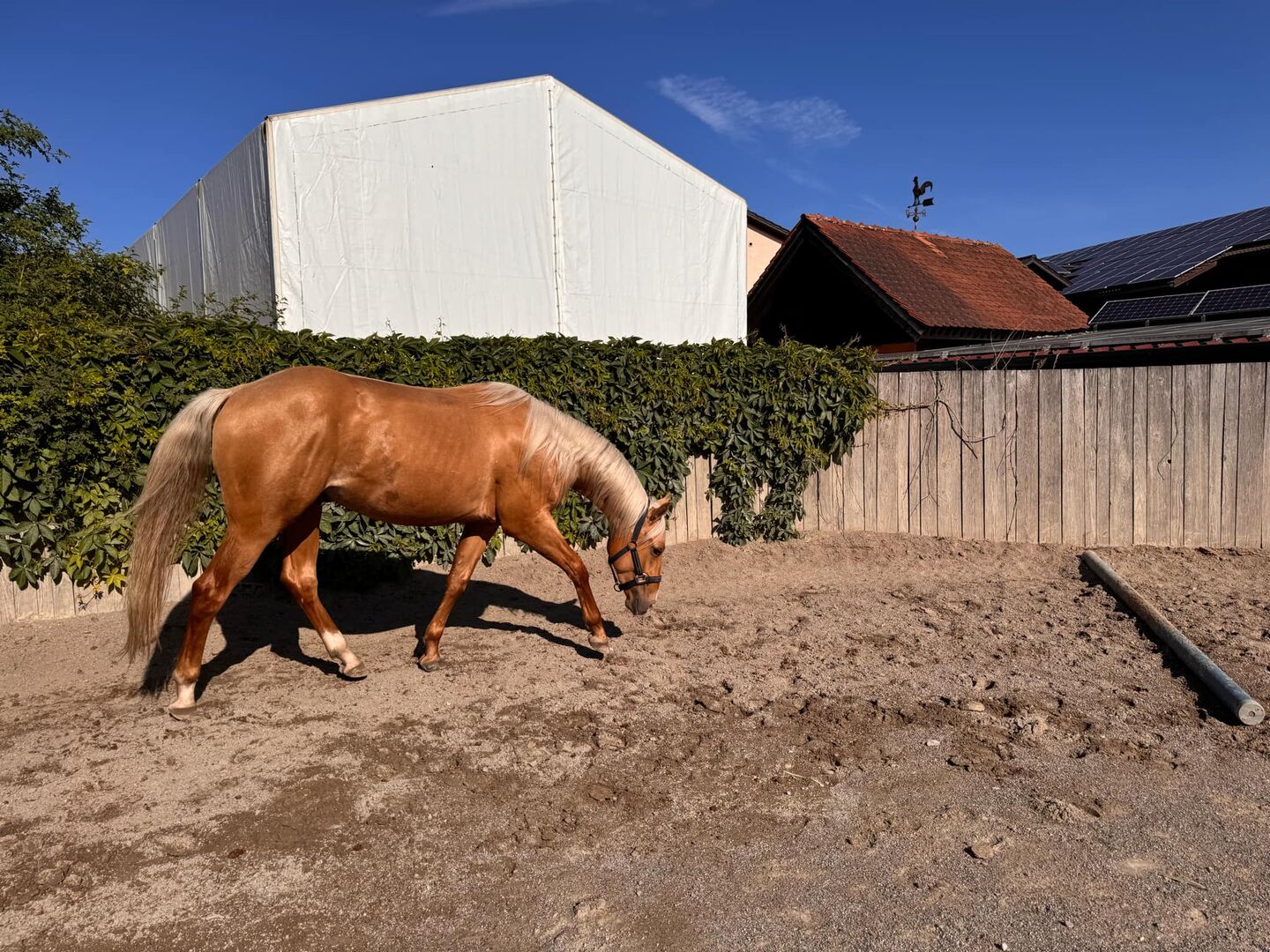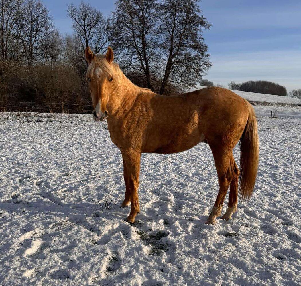 Top bred, palomino colored Quarter Horse gelding - Location: 86879 Wiedergeltingen Rosas Little Joe - beautiful QH gelding, 2023 with a current height of 148 cm, in the appealing color Palomino is looking for a new 5-star home. Joe is a very fearless, people-oriented and well-balanced young horse. He was allowed to grow up in peace in an open stable in the herd, is regularly vaccinated and wormed. No problems at the vet and farrier. He has a correct conformation and is already well proportioned. Joe is open to everything. Shows very good movement. His pedigree also speaks for him. His sire is the successfully shown stallion Ruff Commander (ROM in Reining and Ranch Riding). Joe brings his coolness from his dam's side. The dam still has Bob Acre Doc on paper. Anyone looking for a wonderful young horse should take a look at this boy.