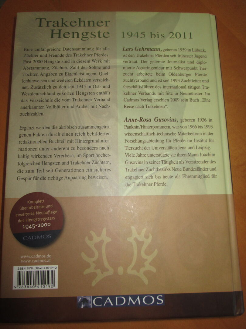 Trakehner Stallion Register 1945 - 2011 Cadmos Gehrmann Gusouvius - For sale is mint reference book of unique value: In this book all Trakehner stallions are recorded, which were used for breeding from 1945 to 2011. For each stallion there is a lot of information that is relevant for the breeder and those interested in the Trakehner horses.