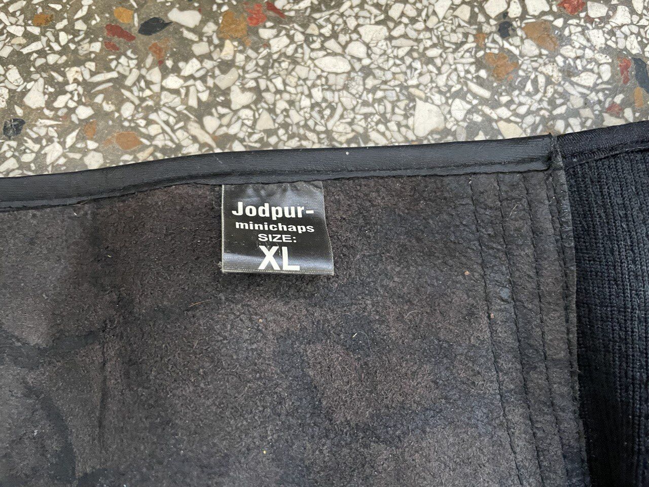 USG Jodpur-mini Chaps synthetic leather black Gr XL - Sell my formerly used and well preserved black USG Jodpur Mini Chaps in size XL (good 45cm long, for the stronger calf). All parts (zipper, snaps, bars) are functional, the bars I had probably once shortened something, which can be reversed. The chaps were maintained, are well stable, the condition can be taken from the photos.