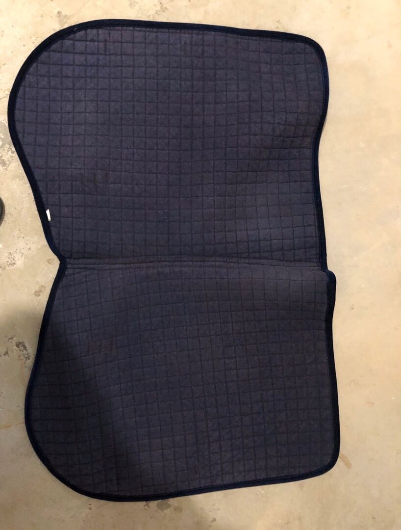 Velvet saddle pad dark blue large horse dressage - Selling this dark blue large horse saddle pad made of velvet fabric. The saddle pad is rather small. We had it on warmbloods but I'm still giving COB as the size to be on the safe side. Please contact me if you have any questions.