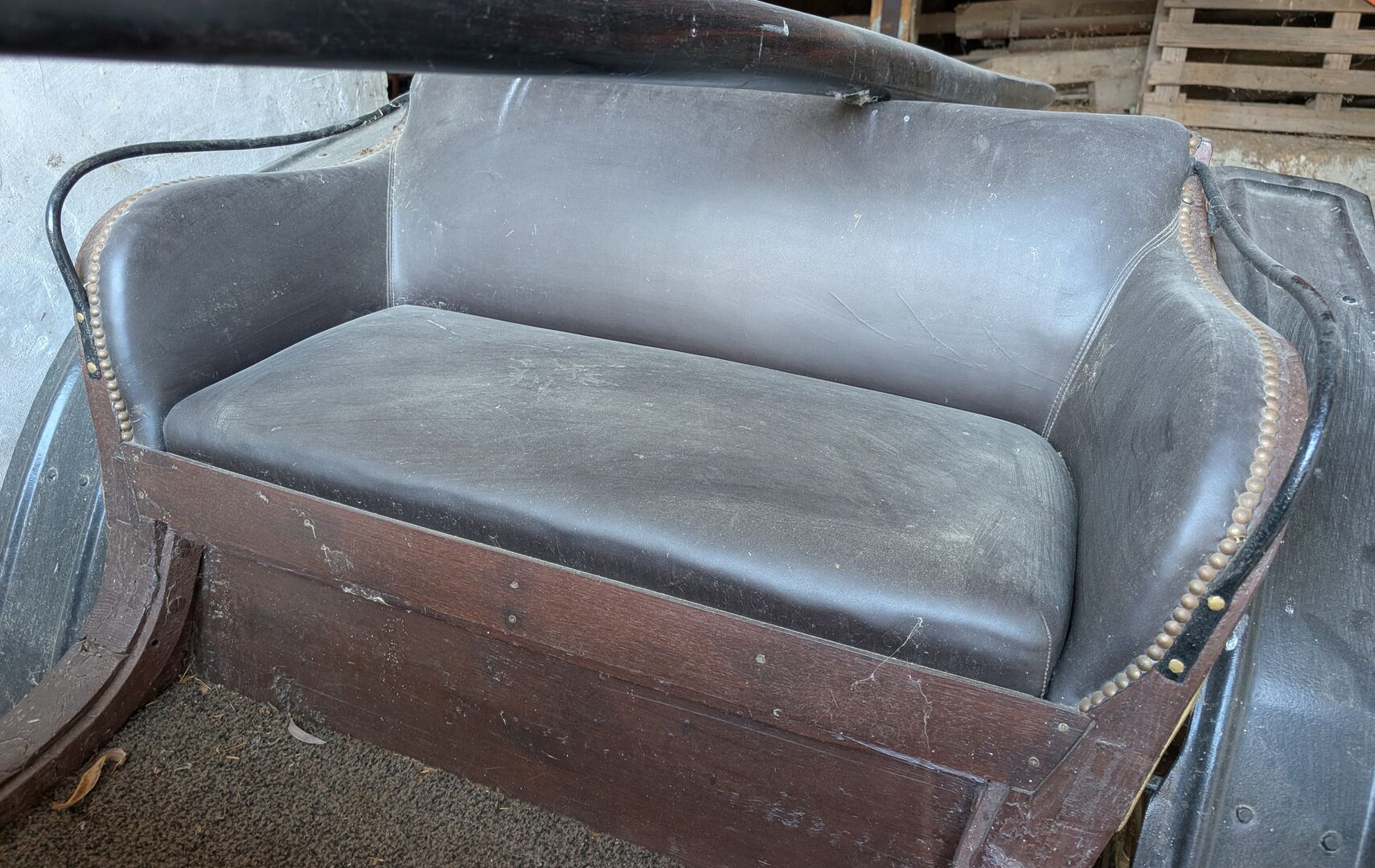 Wheels are wooden spoke wheels with solid rubber.