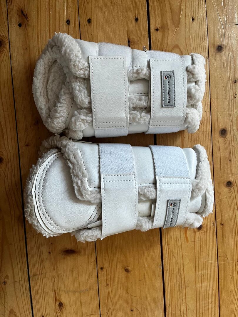 Waldhausen Dressage Soft Gaiters - White - Size M - I am offering for sale a used pair (or there are two pairs) of Waldhausen Dressage Soft Gaiters in white, size M. They have only been used twice. They have only been used twice and are in very good condition - freshly washed after the last use and without heavy soiling or damage. Only very slight signs of wear are visible.