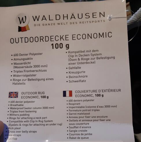 Waldhausen Outdoor Blanket 145 Economic 100g - 100 g/m² thermal filling as a transitional blanket or for protection on cool rainy days.